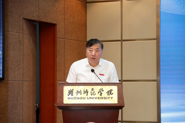 金佩华代表学校向省人民检察院、市委政法委和市检察院长期以来对学校发展的关心支持表示感谢,并对研究中心和联盟的未来发展提出三点希望,一是聚势谋远、合力共赢,与市检察院合力打造大学生法治教育和预防违法犯罪工作的新平台、新机制,努力形成具有实践推广价值和理论研究意义的湖州方案和湖州模式;二是聚焦学生、创新打法,要创新育人平台载体、思政课程体系、检校合作机制和师资培育模式,使法治教育真正入眼入脑入心;三是聚力研究、打造智库,要打造多高校联动、多学科交叉的预防大学生犯罪理论研究高地和法治实践品牌,力争成为浙江乃至全国的重要智库。