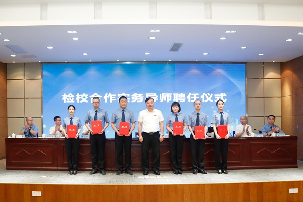 仪式上,金佩华、唐华和叶主分别就深入推进检校合作与高校服务法治湖州建设作了主题讲话,并为市检察院6位检察部主任颁发实务导师聘书。